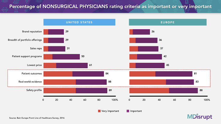 According to Bain & Company (see figure below), 88% of US physicians consider real-world evidence a top criterion in their prescribing practices. Within a healthtech company, medical affairs can play a key role in helping to generate the real-world evidence required for health products to be widely adopted in the marketplace.
