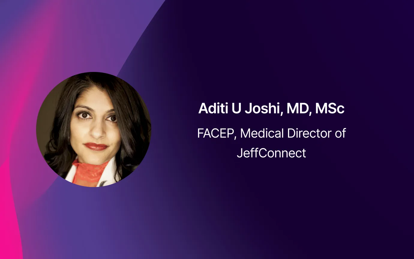 PodcastAditi U Joshi MD, MSc, FACEP, Medical Director of JeffConnect, on telemedicine and virtual care—are they here to stay?
